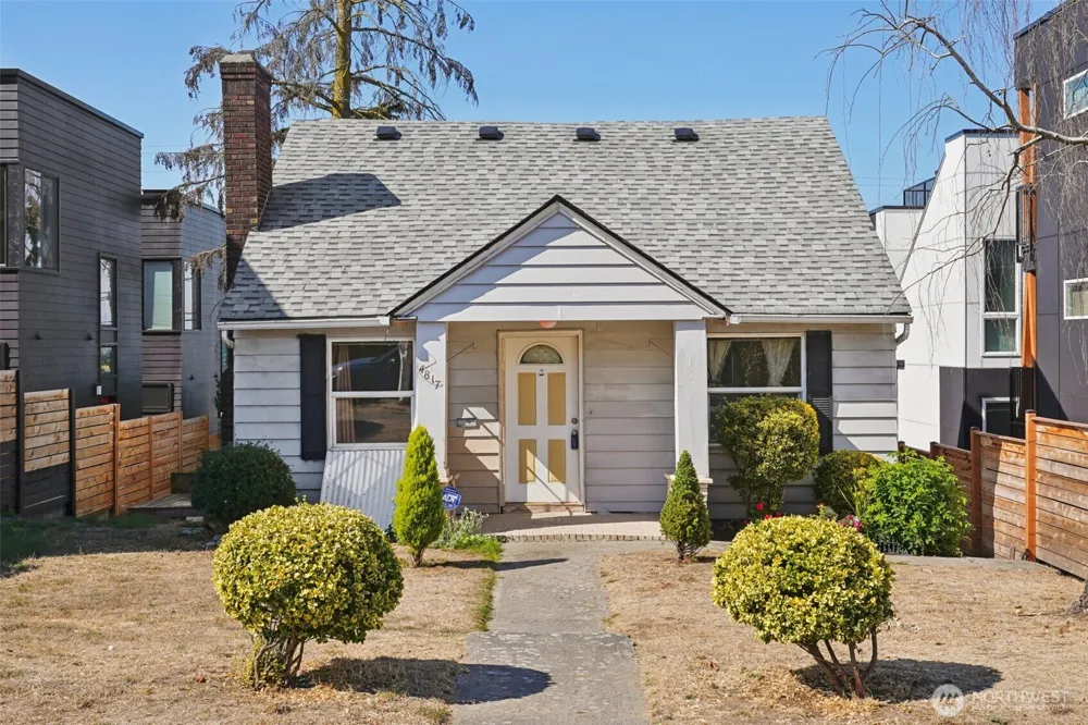 Reimagine this Alaska Junction home with water views. 2 units with 2 Bedrooms on the main and upstairs and separate entrance, kitchenette and bedroom in lower ADU unit. Alley access for DADU or townhomes on back of 4600sf lot or tear down and build new. 3 min walk to Bakery Nouveau and 5 min walk to Whole Foods. 97 Walk Score!